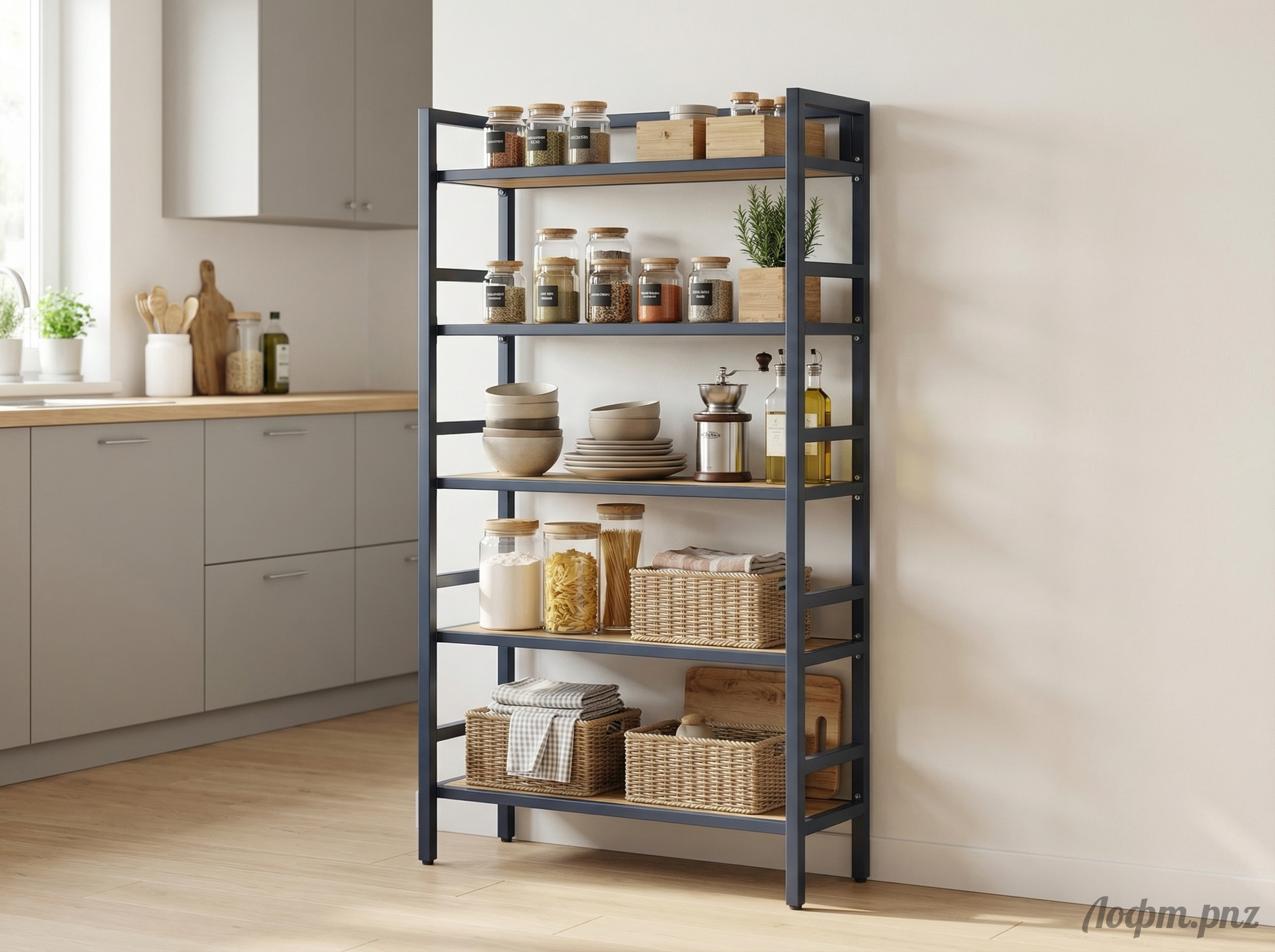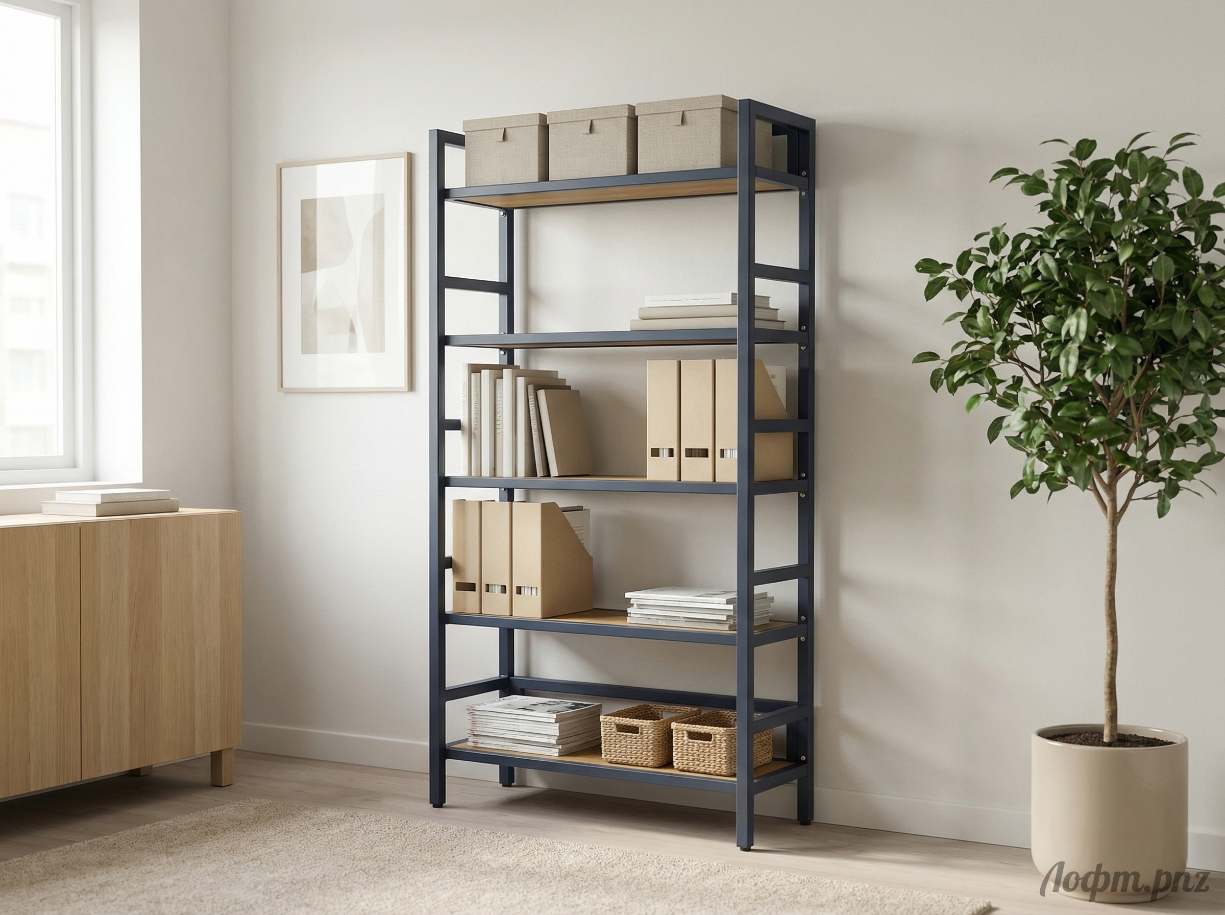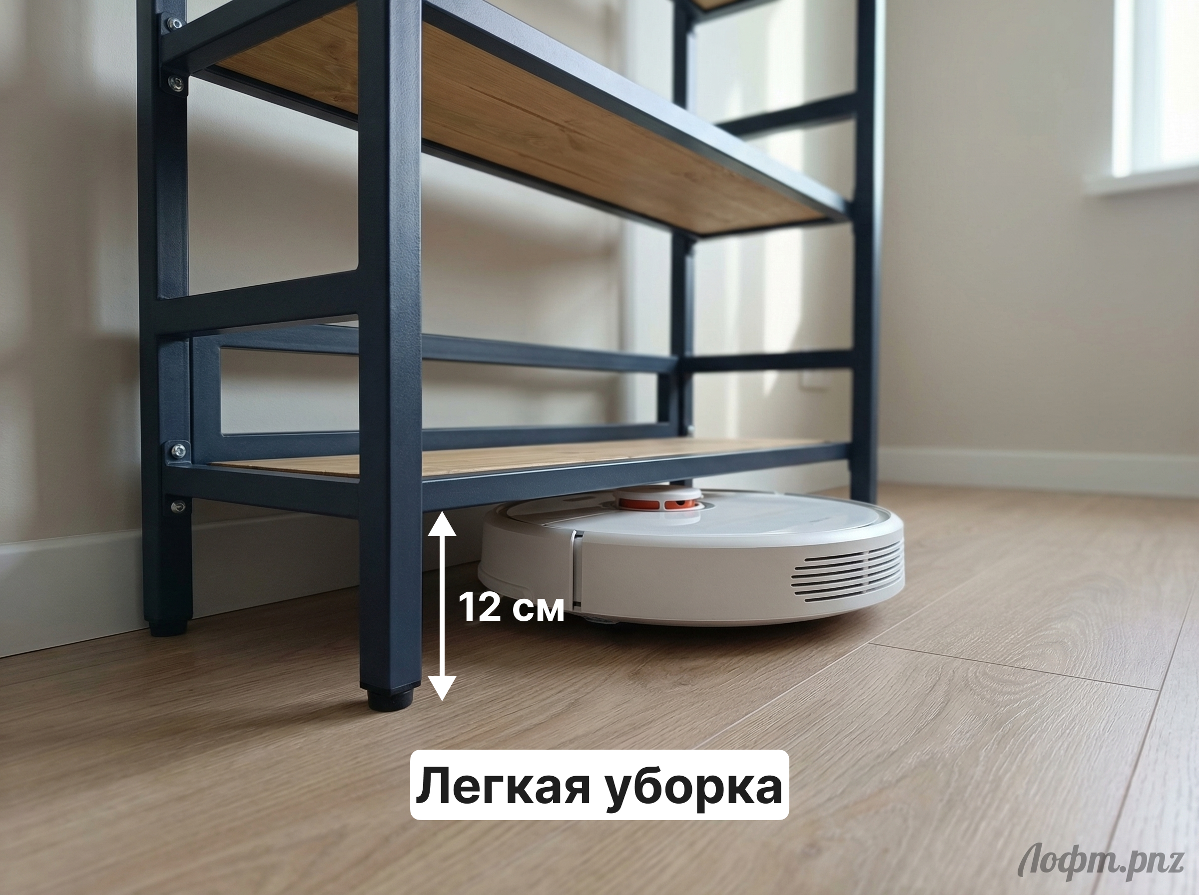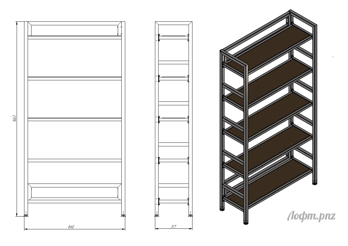 Цвет на фото: ножки - графит, полки - дуб.