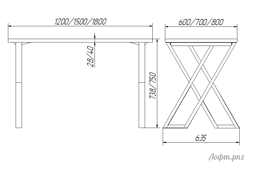 Размер ножек на фото: высота 710 мм., ширина 635 мм.